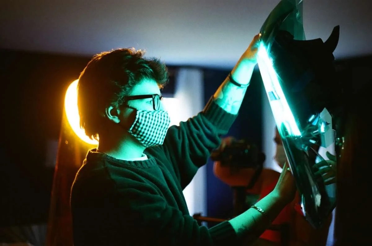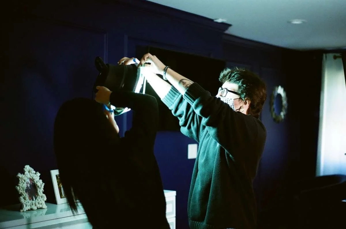 Behind the scenes with Helen Burken and Madeline Doherty.